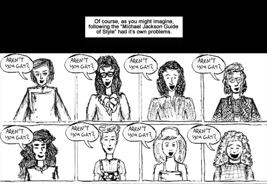My ambivalent opinion on Michael Jackson, in comic strip form. This was created before his untimely death.